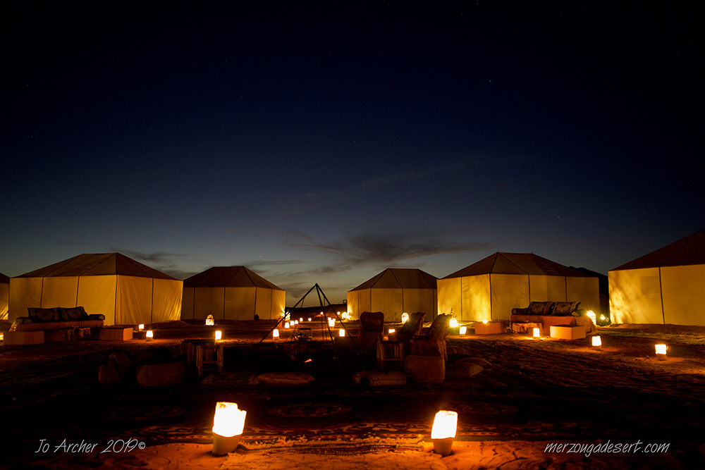Au dunes d'erg Chebbi , les dunes les plus hautes au sud marocain , les bivouacs ont lieu, soit en plein désert, soit en bordure des villages, soit dans des oasis ou des hamada (plateaux )dans des endroits isolés où on respectera votre quiétude. Des matelas sont mis à votre disposition et midi et soir .Pour ceux qui ne veulent pas dormir à la belle étoile, la khaïma, la grande tente berbère est montée tous les soirs.